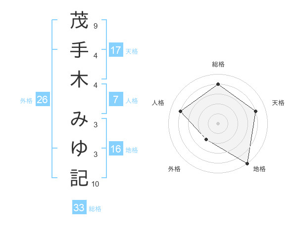 茂手木 みゆ記さんを姓名の画数から五運を鑑定
