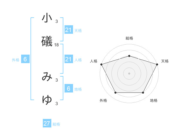 小礒 みゆさんを姓名の画数から五運を鑑定