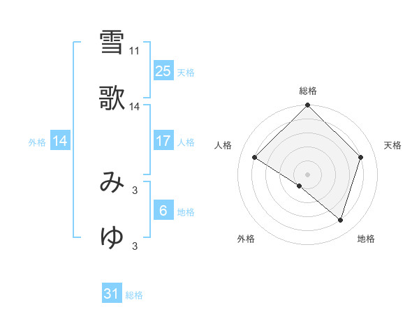 雪歌 みゆさんを姓名の画数から五運を鑑定
