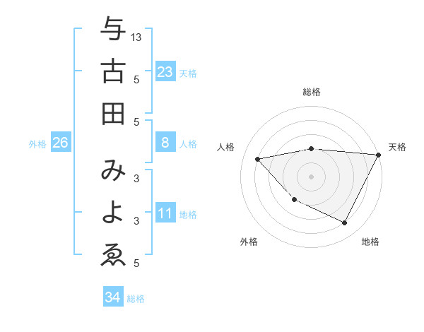 与古田 みよゑさんを姓名の画数から五運を鑑定