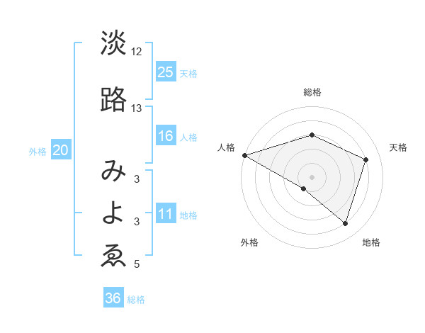 淡路 みよゑさんの総格は36画の3点!
