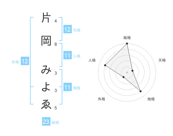 片岡 みよゑさんの総格は23画の5点!