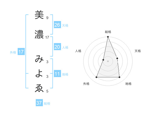 美濃 みよゑさんを姓名の画数から五運を鑑定