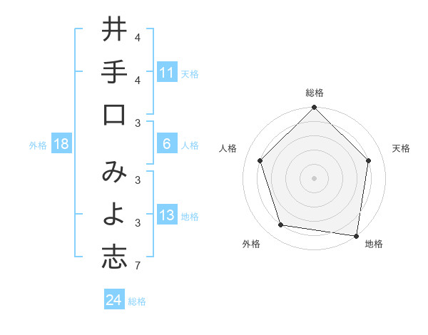 井手口 みよ志さんを姓名の画数から五運を鑑定