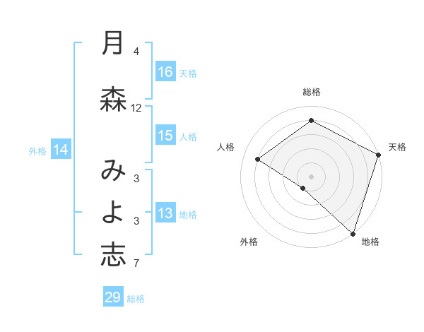 月森 みよ志さんの総格は29画の4点!