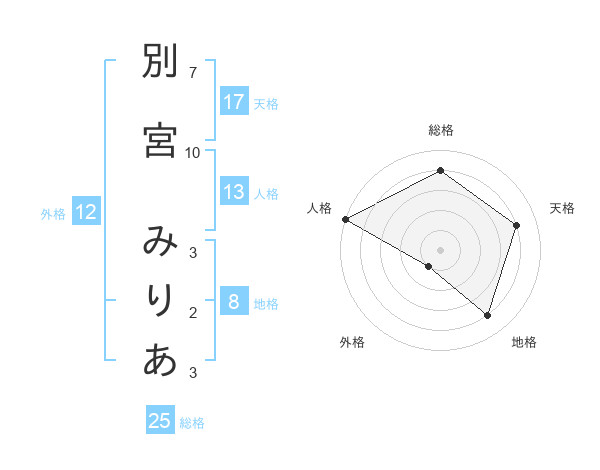 別宮 みりあさんの外格は12画の1点!