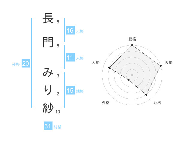 長門 みり紗さんを姓名の画数から五運を鑑定