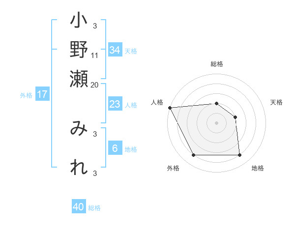 小野瀬 みれさんを姓名の画数から五運を鑑定