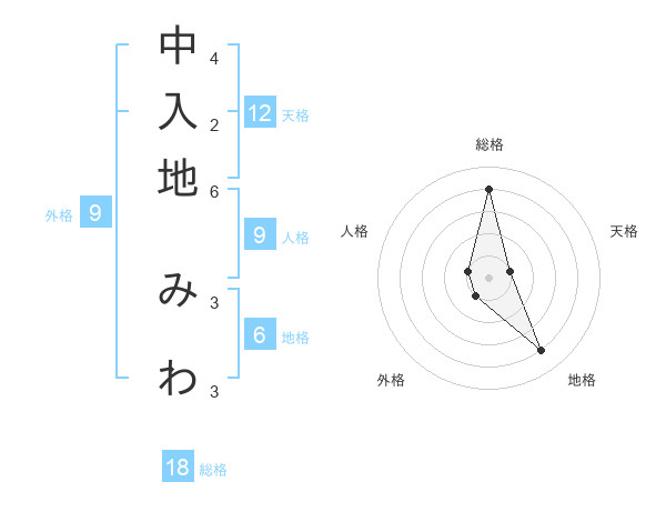中入地 みわさんの総格は18画の4点!