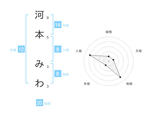 河本 みわさんの総格は20画の1点!
