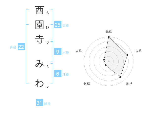西園寺 みわさんの総格は31画の5点!