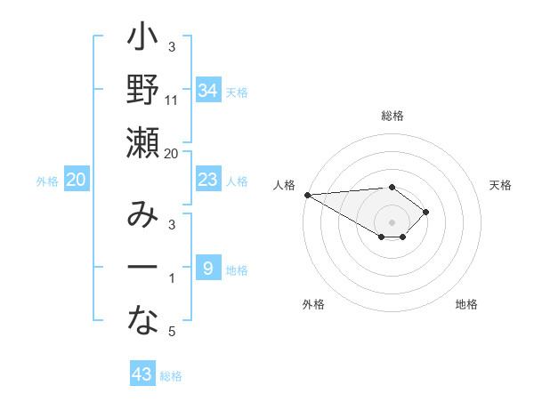 小野瀬 みーなさんを姓名の画数から五運を鑑定