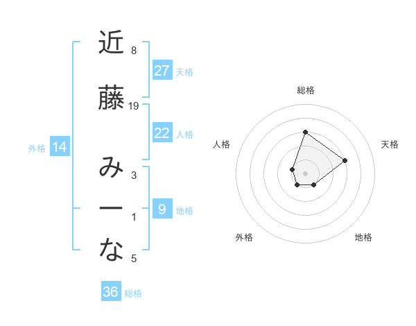 近藤 みーなさんを姓名の画数から五運を鑑定