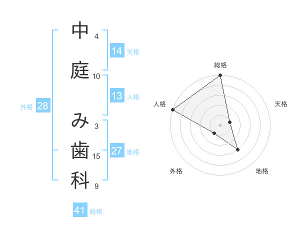 中庭 み歯科さんを姓名の画数から五運を鑑定