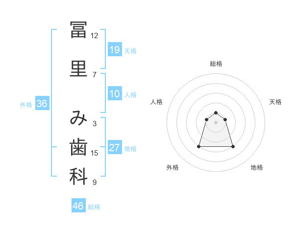 冨里 み歯科さんの総格は46画の1点!