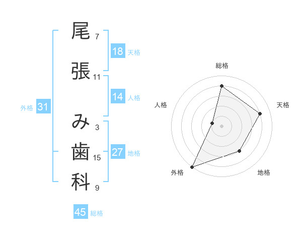 尾張 み歯科さんを姓名の画数から五運を鑑定