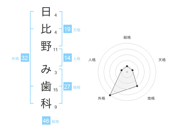 日比野 み歯科さんを姓名の画数から五運を鑑定