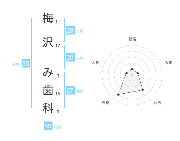梅沢 み歯科さんを姓名の画数から五運を鑑定