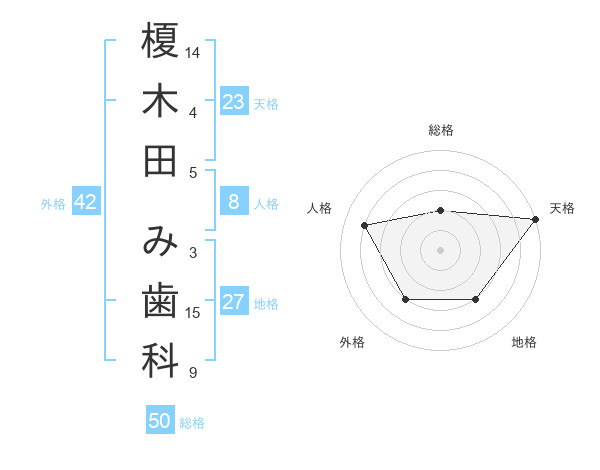 榎木田 み歯科さんの総格は50画の2点!