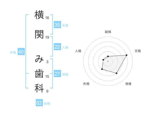 横関 み歯科さんの総格は62画の1点!