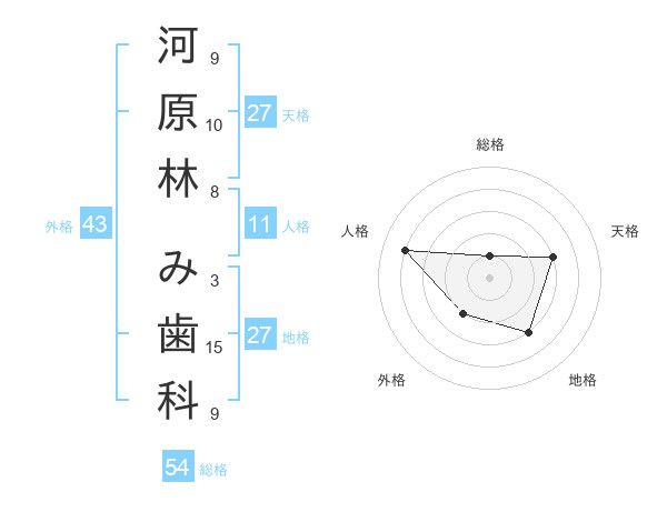 河原林 み歯科さんの地格は27画の3点!