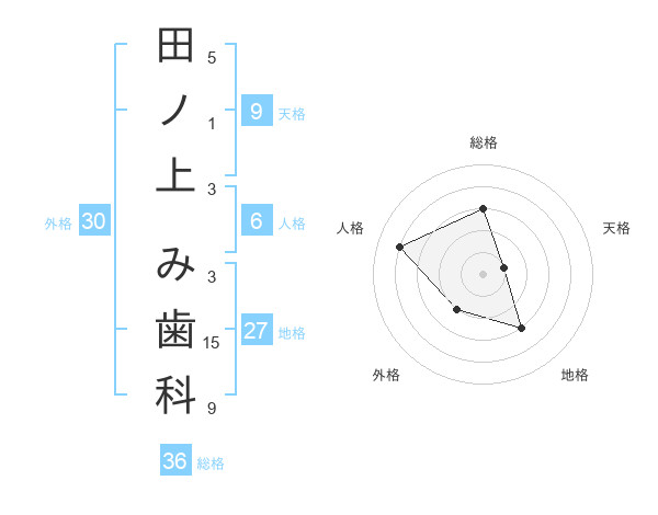 田ノ上 み歯科さんを姓名の画数から五運を鑑定