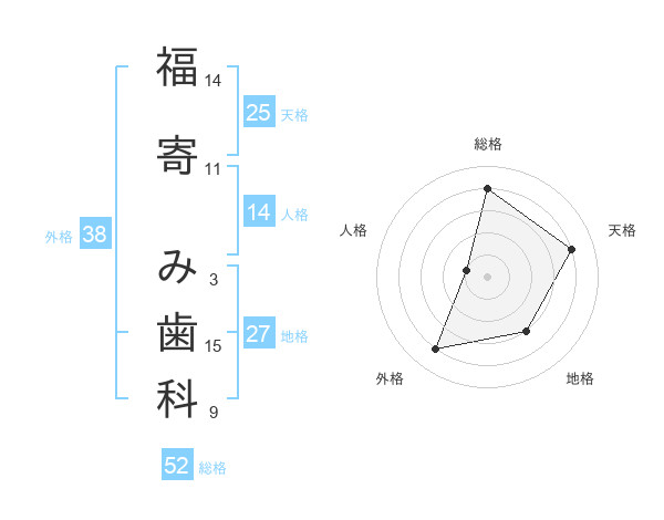 福寄 み歯科さんの総格は52画の4点!