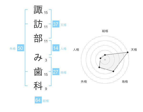 諏訪部 み歯科さんの総格は64画の1点!