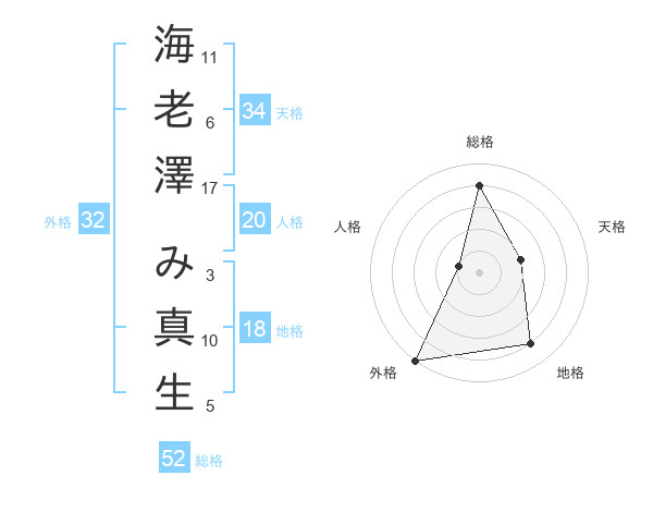 海老澤 み真生さんの外格は32画の5点!