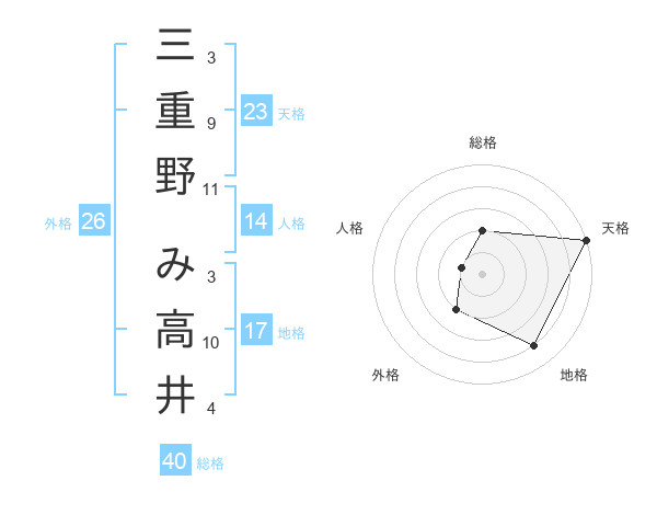 三重野 み高井さんを姓名の画数から五運を鑑定