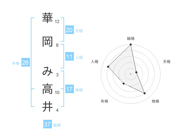 華岡 み高井さんの総格は37画の5点!