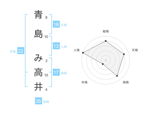 青島 み高井さんの総格は35画の4点!