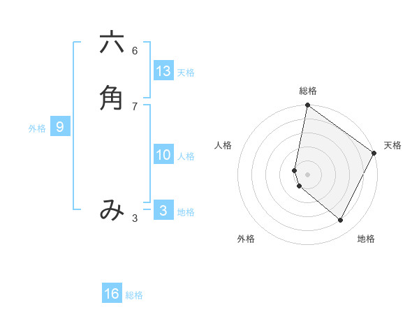 六角 みさんの天格は13画の5点!