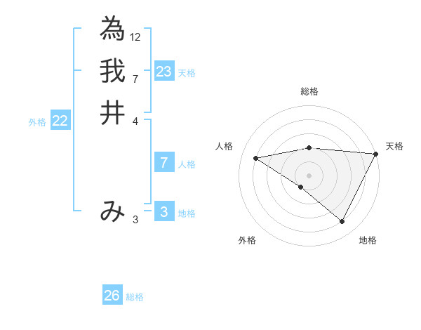 家系が持つ宿命的な運勢を表します。祖先から受け継いだ苗字ですので自分の力が及びません。家柄を象徴します。