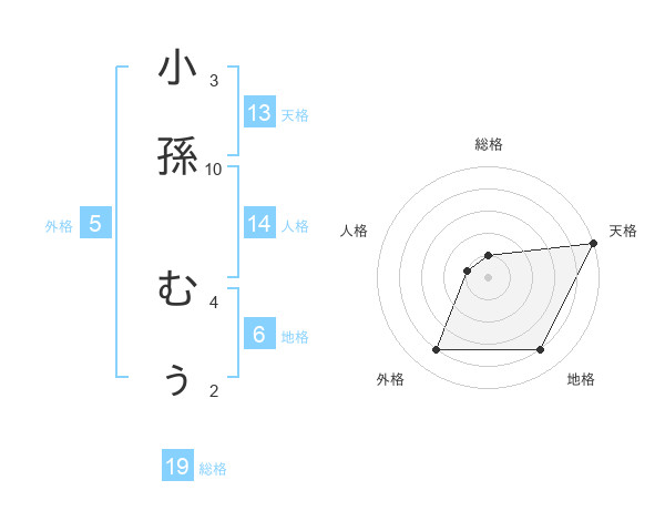 小孫 むぅさんの天格は13画の5点!
