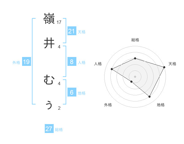 嶺井 むぅさんの総格は27画の3点!