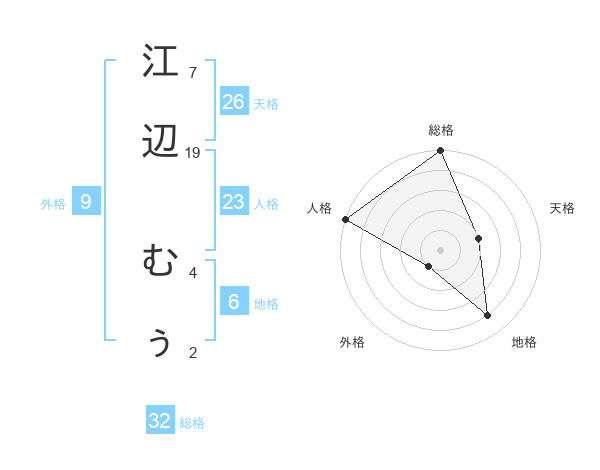 江辺 むぅさんを姓名の画数から五運を鑑定