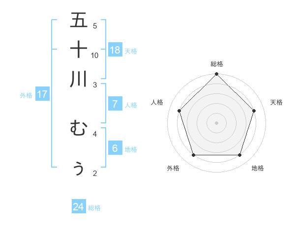五十川 むぅさんを姓名の画数から五運を鑑定