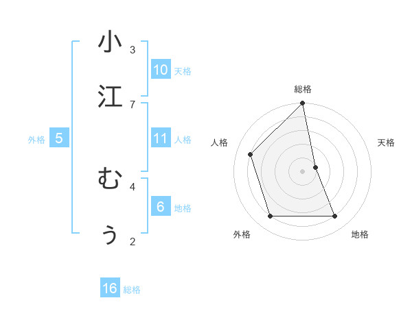 小江 むぅさんの総格は16画の5点!
