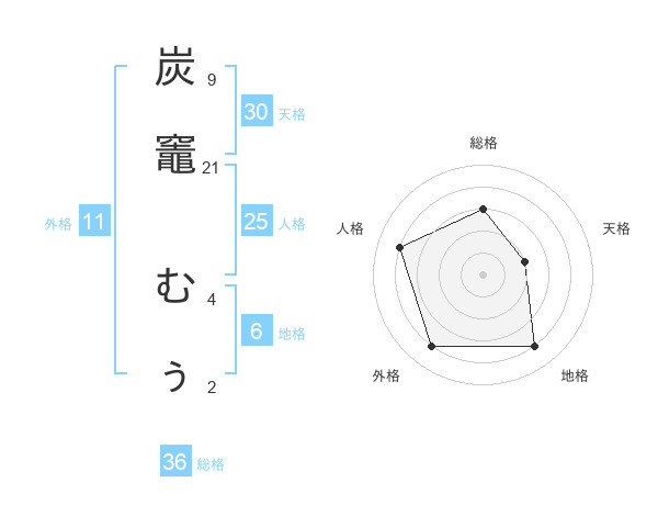 炭竈 むぅさんの総格は36画の3点!