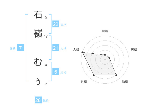 石嶺 むぅさんを姓名の画数から五運を鑑定