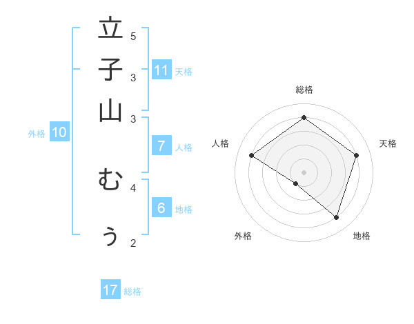 立子山 むぅさんを姓名の画数から五運を鑑定