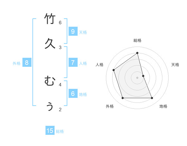 竹久 むぅさんを姓名の画数から五運を鑑定