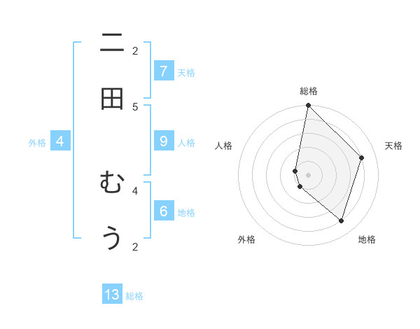 二田 むうさんの総格は13画の5点!