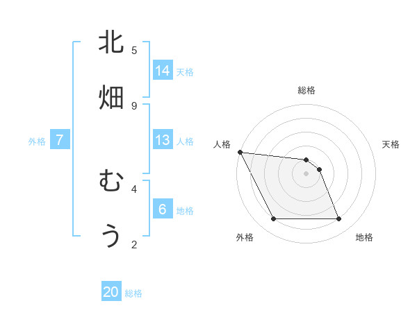 北畑 むうさんの外格は7画の4点!