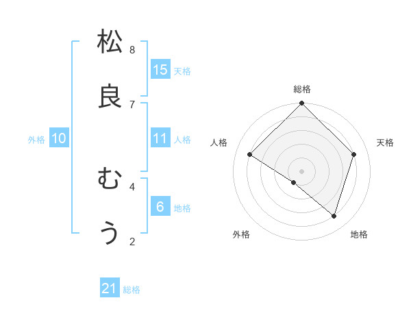 松良 むうさんの総格は21画の5点!