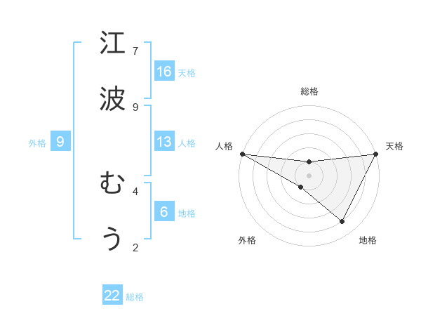 江波 むうさんの天格は16画の5点!