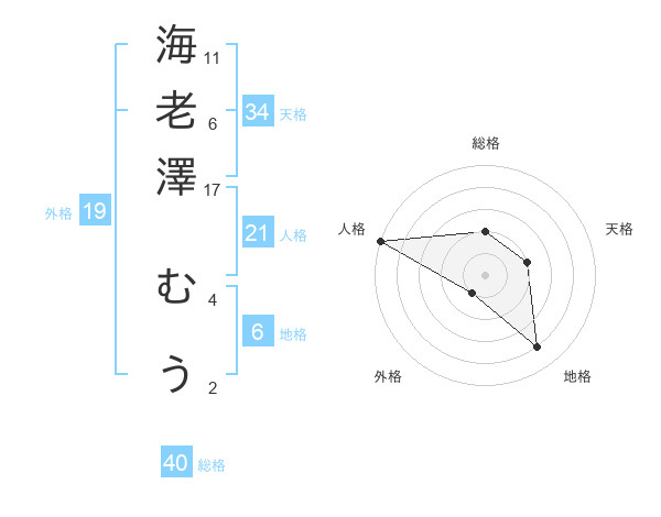 海老澤 むうさんの総格は40画の2点!