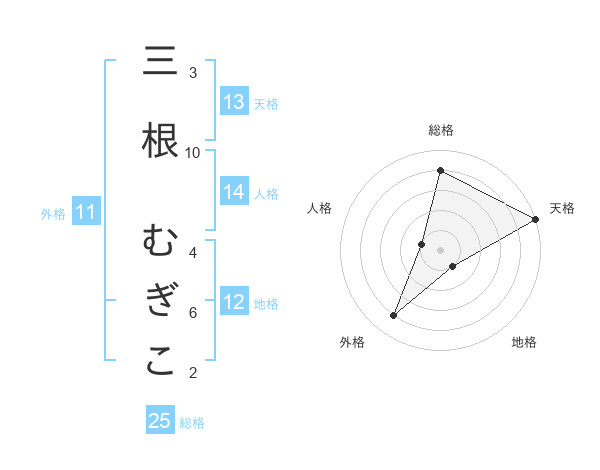 三根 むぎこさんの天格は13画の5点!