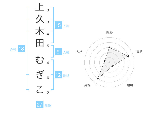 上久木田 むぎこさんの総格は27画の3点
